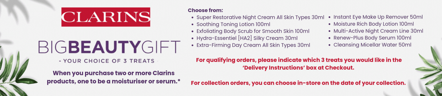 Sale Clarins Make-Up Gift Set €32.00 FREE GIFT *When you purchase 2 Clarins Products - 1 to be a moisturiser or serum