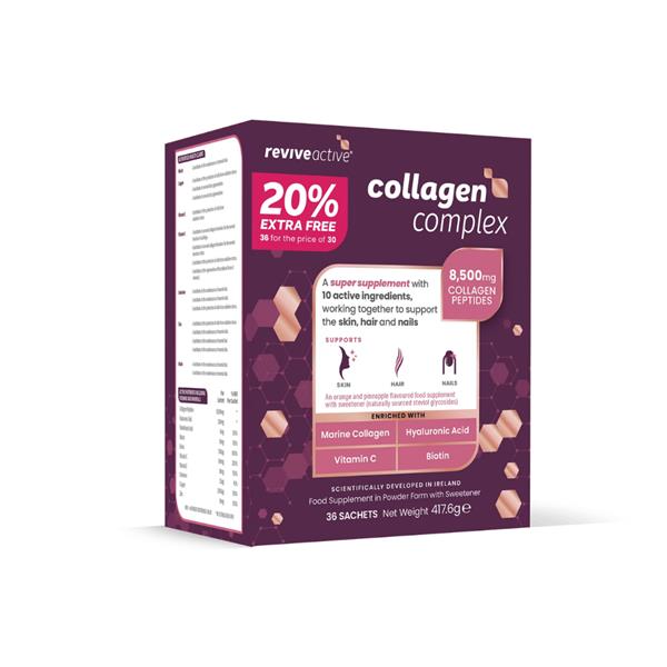 Collagen Complex is a super supplement with 10 active ingredients, working in harmony to support the skin, hair and nails from the inside out.